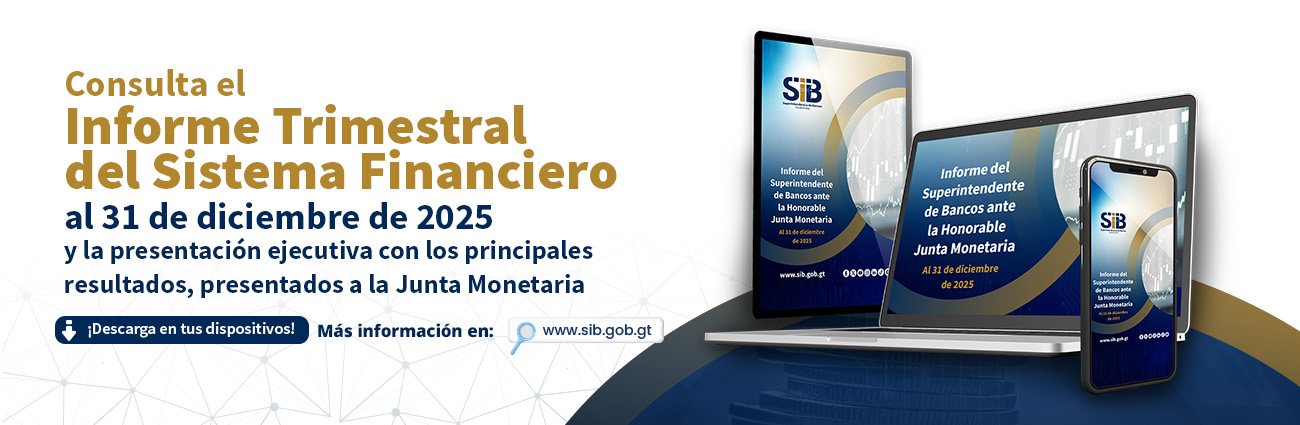 La Superintendencia de Bancos pone a su disposición el Informe Trimestral del Sistema Financiero referido al 31 de diciembre de 2025, así como la presentación ejecutiva con los principales resultados, presentados a la Junta Monetaria.